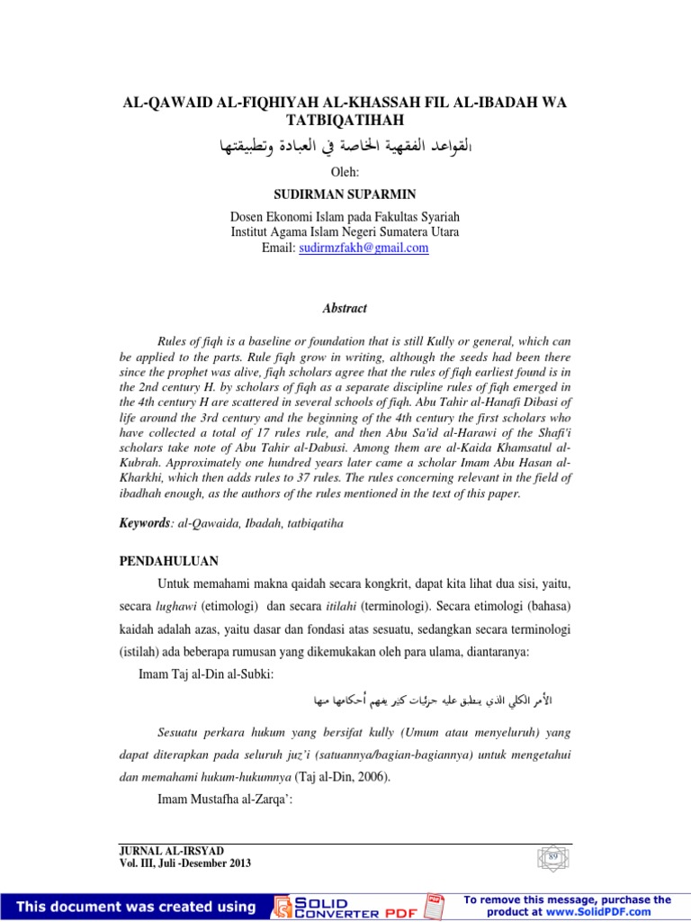 Pdf Al Qawaid Al Fiqhiyah Al Khassah Fil Al Ibadah Wa