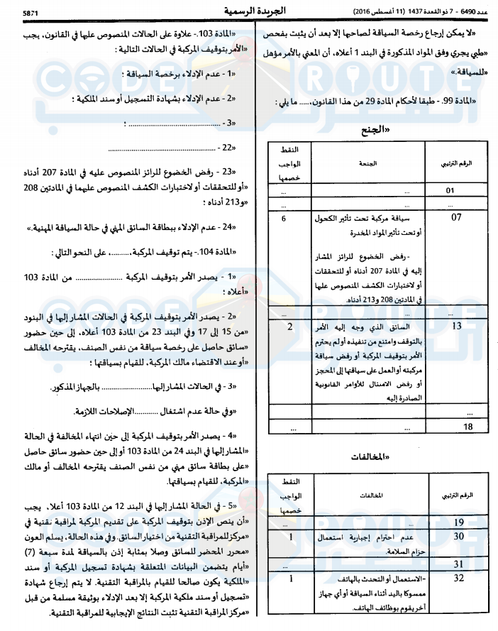 أهم التعديلات الخاصة ب مدونة السير 2016 Coderoute Maroc