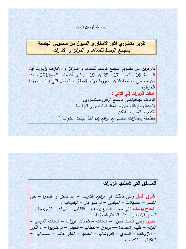 تقرير حول دور جامعة الخرطوم في درء آثار السيول والأمطار بمنطقة شرق